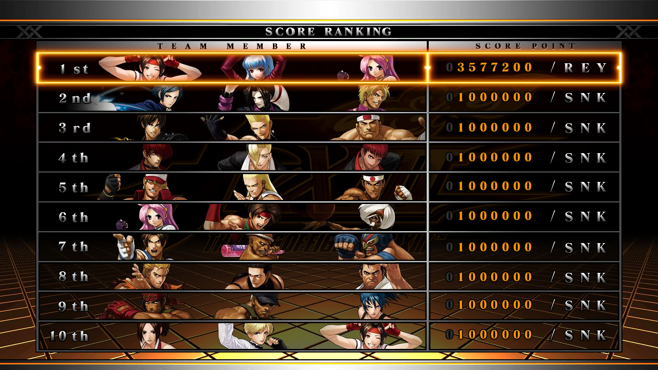 Kyo, K', Ash Team Yuri, Kula, Athena Team King, Chin, Hwa Team Benimaru, Robert, Andy Team Elisabeth, Mai, King Team Daimon, Raiden, Maxima Team Ash, Duolon, Shen Team