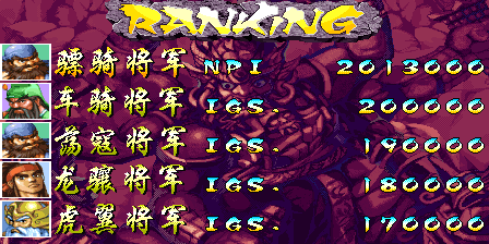 | Guan Yu | - Zhang Fei - | Zhao Yun | Zhuge Liang | | Huang Zhong | Ma Chao | Diao Chan | Liao Zhang | |