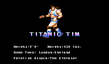 | Biff | Oni | Stingray | Grater | Black W. | Saber | Jumbo | | Gunloc | - Titanic - | Haggar | Rasta | Ortega | Wraith | Scorpion | |