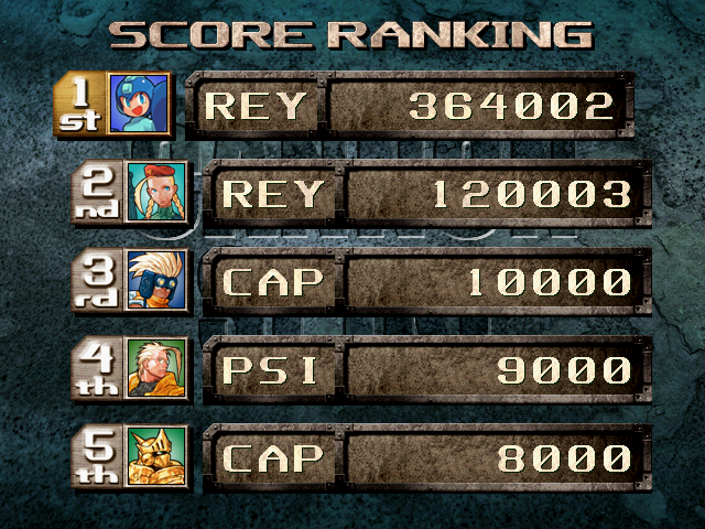 | Cammy | Charlie | Arthur | Shiba | Simone | - Megaman - | B.B.Hood | | - Solo Play - | Team Play | |