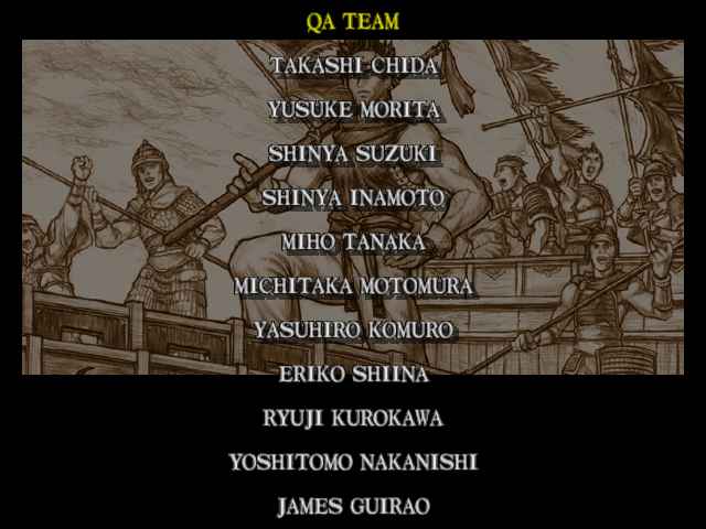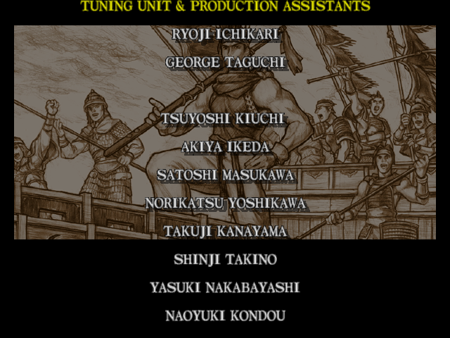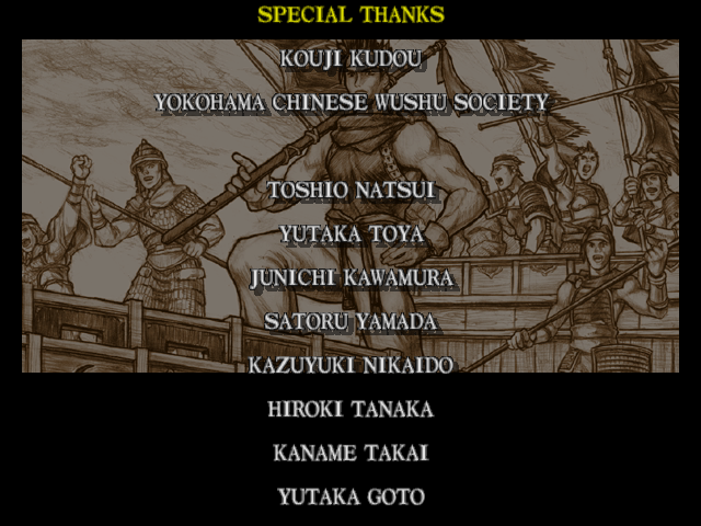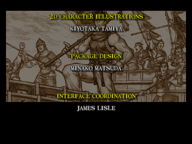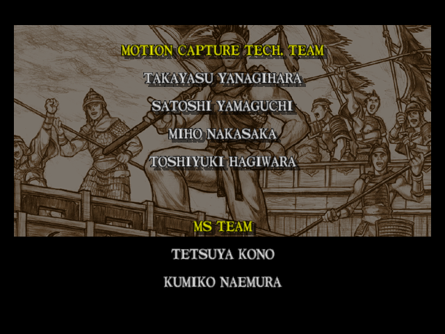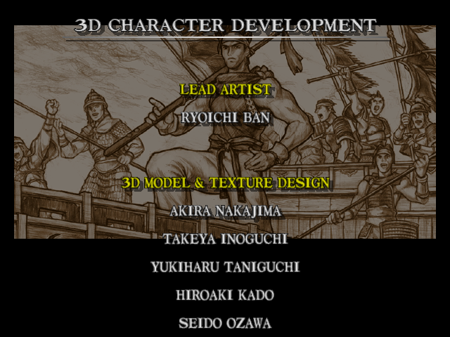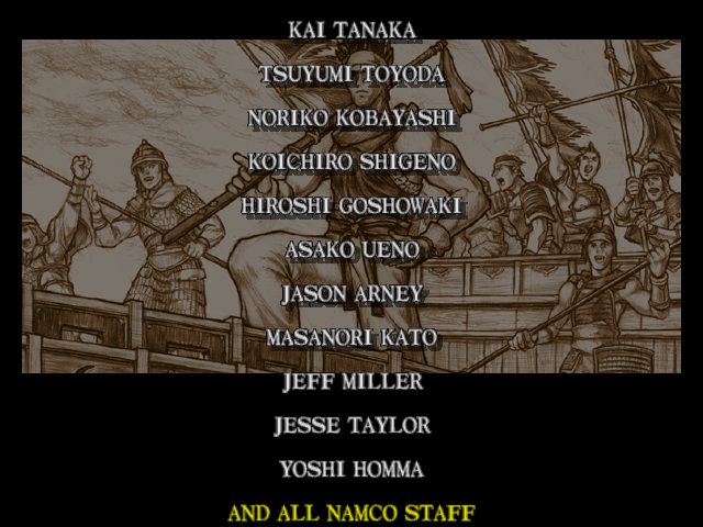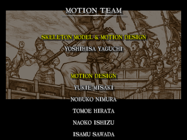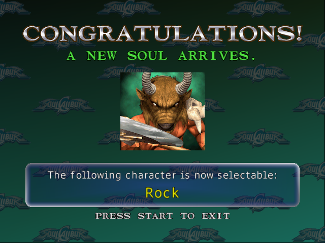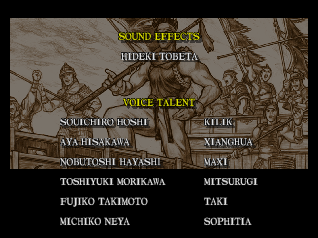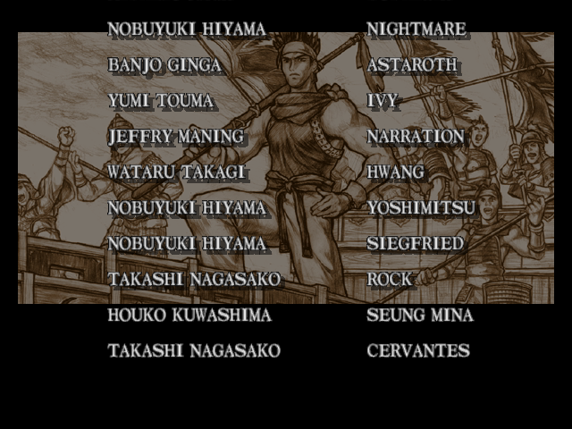 | Mitsurugi | Voldo | Ivy | Sophitia | Kilik | Xianghua | Maxi | Nightmare | Taki | Astaroth | - Hwang - | | Yoshimitsu | Lizardman | Siegfried | Rock | Seung Mina | Cervantes | Edge Master | Inferno | |