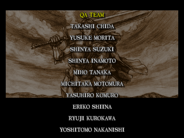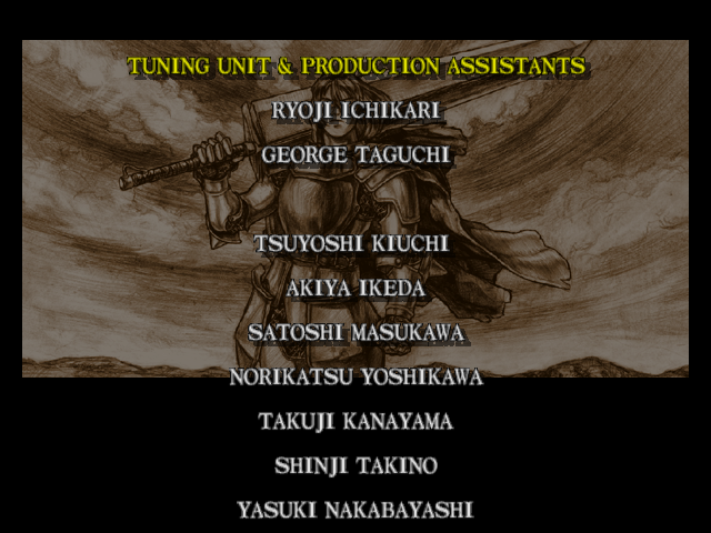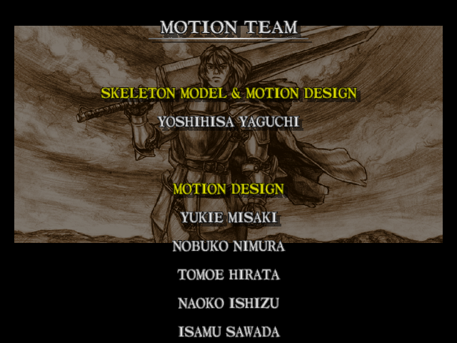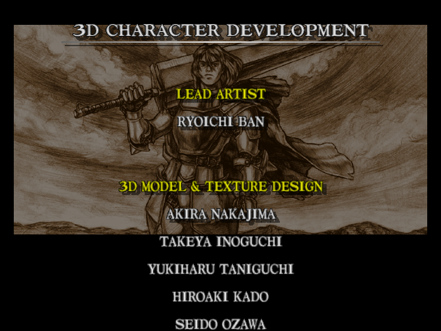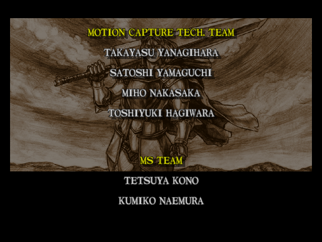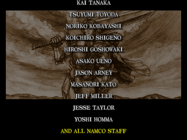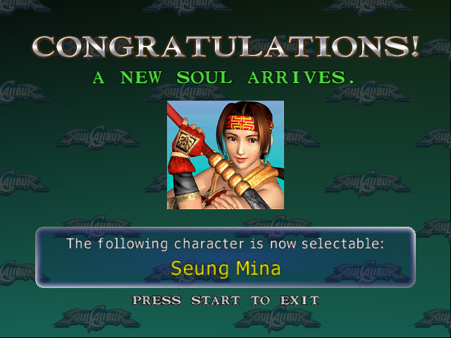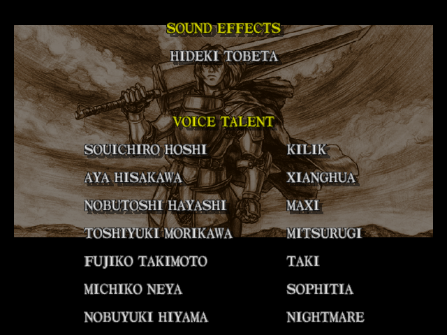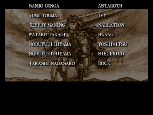 | Mitsurugi | Voldo | Ivy | Sophitia | Kilik | Xianghua | Maxi | - Nightmare - | Taki | Astaroth | Hwang | | Yoshimitsu | Lizardman | Siegfried | Rock | Seung Mina | Cervantes | Edge Master | Inferno | |