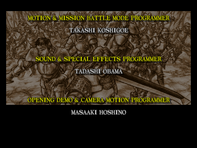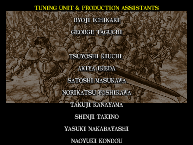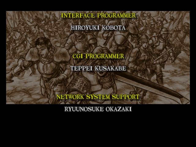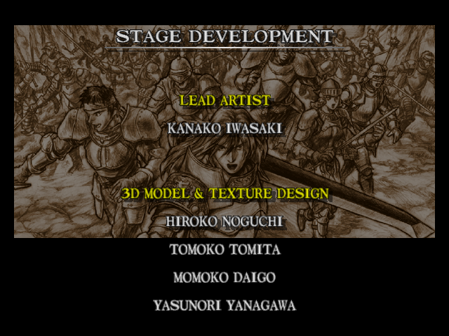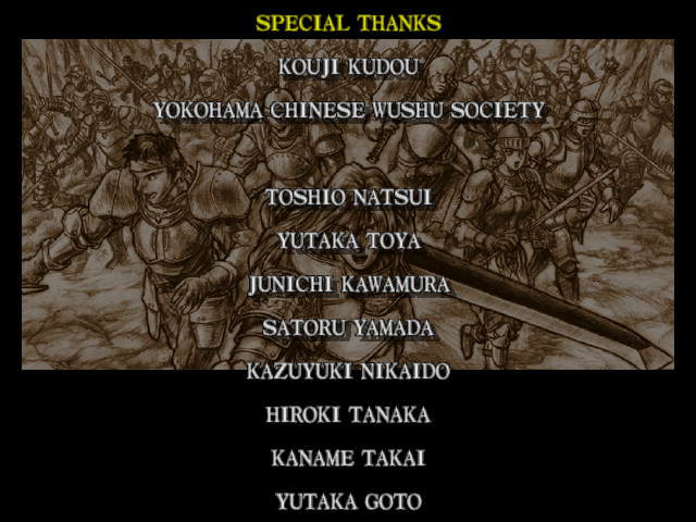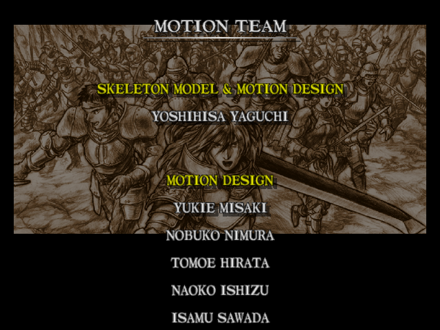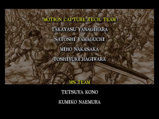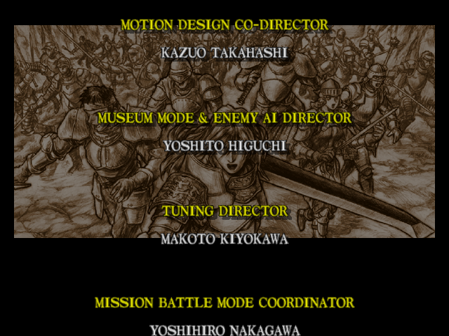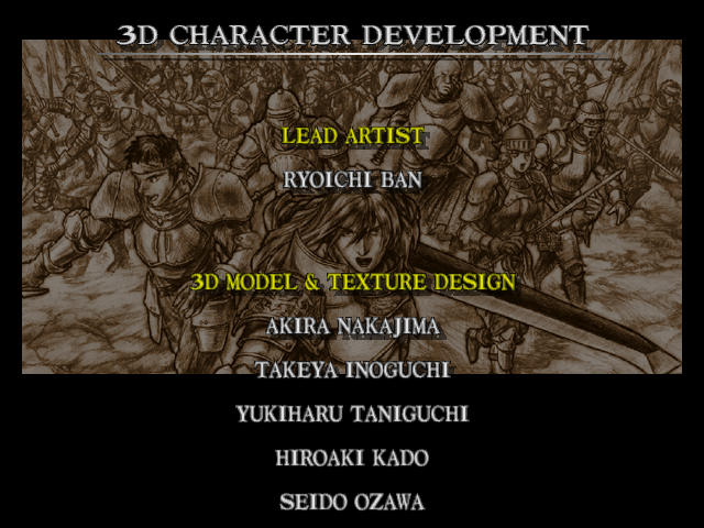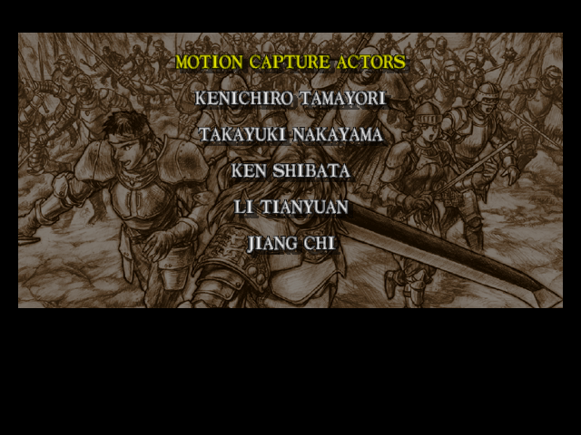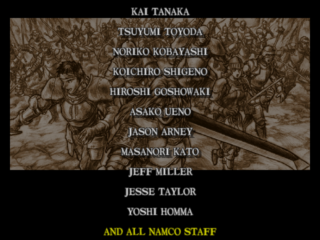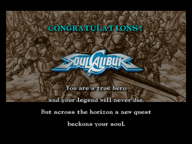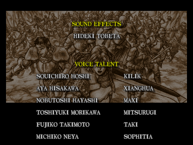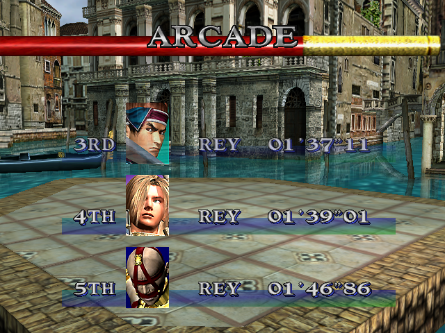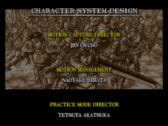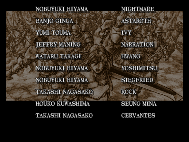 | Mitsurugi | Voldo | Ivy | Sophitia | Kilik | Xianghua | Maxi | Nightmare | Taki | Astaroth | Hwang | | Yoshimitsu | Lizardman | - Siegfried - | Rock | Seung Mina | Cervantes | Edge Master | Inferno | |