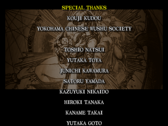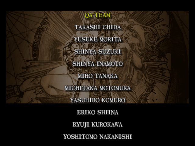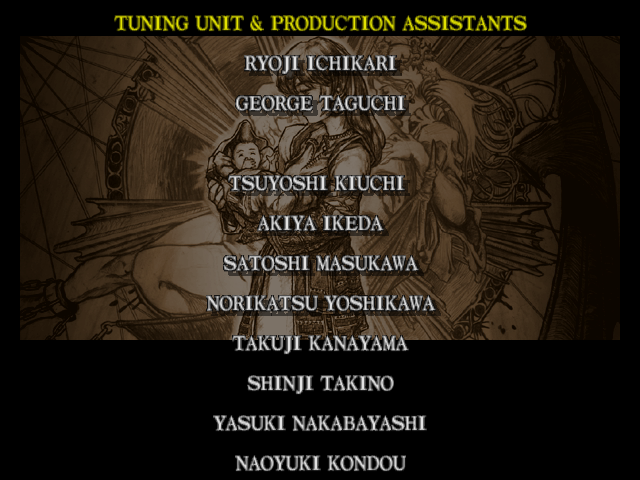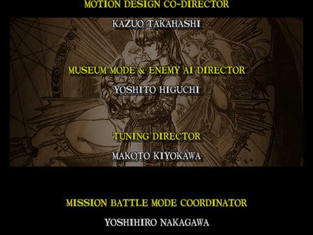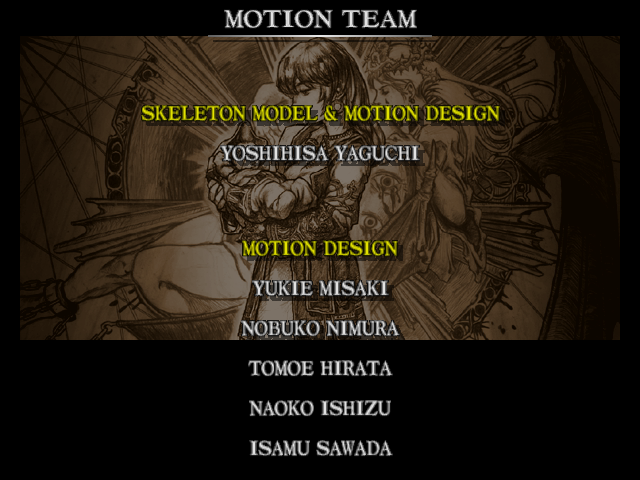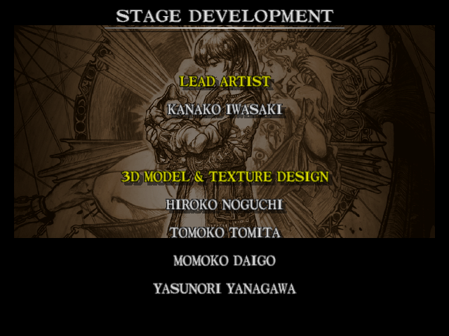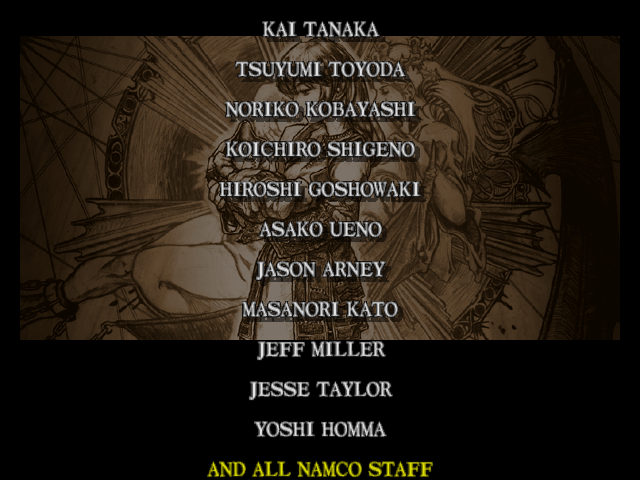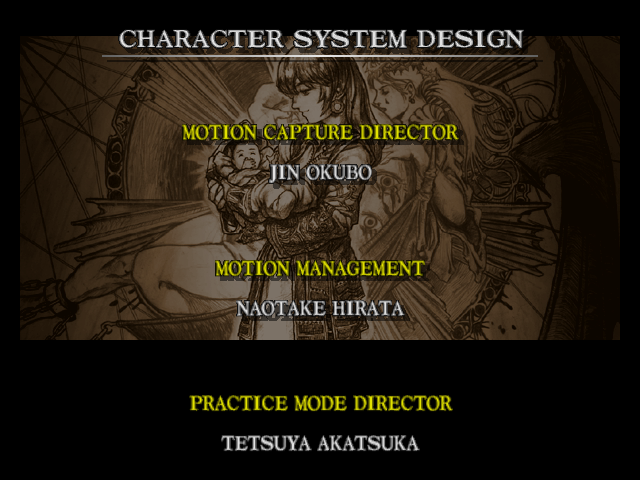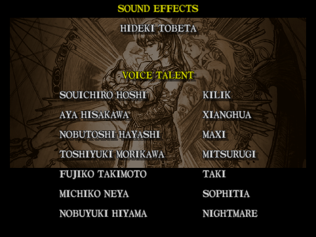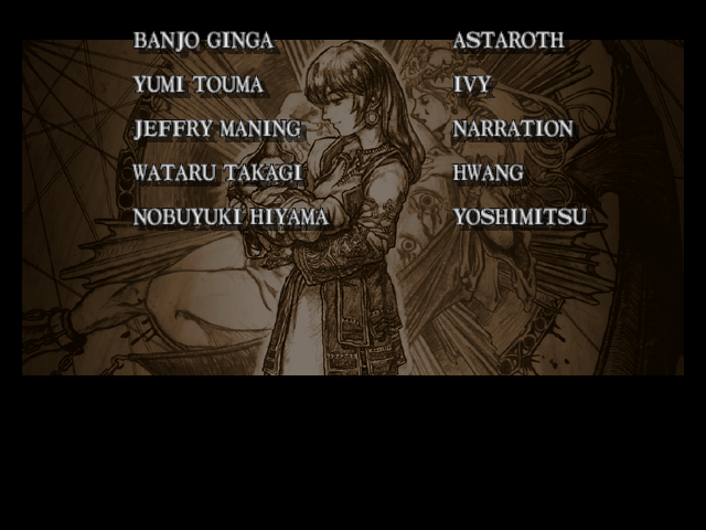 | Mitsurugi | Voldo | Ivy | - Sophitia - | Kilik | Xianghua | Maxi | Nightmare | Taki | Astaroth | Hwang | | Yoshimitsu | Lizardman | Siegfried | Rock | Seung Mina | Cervantes | Edge Master | Inferno | |