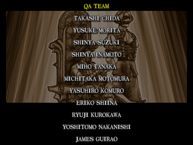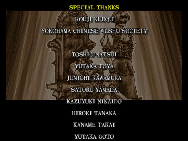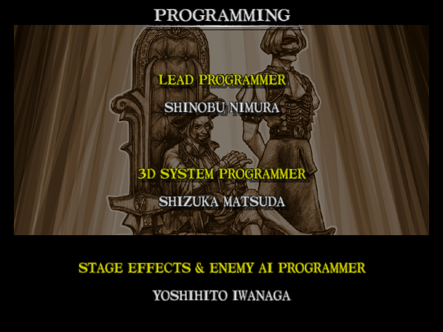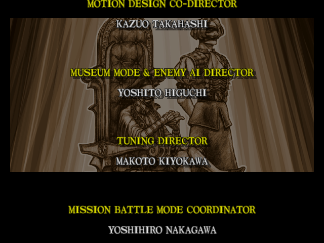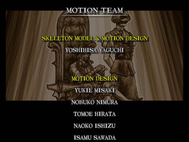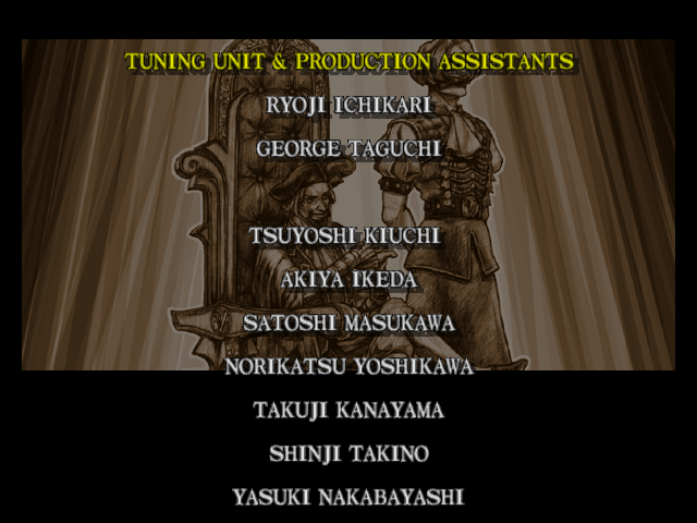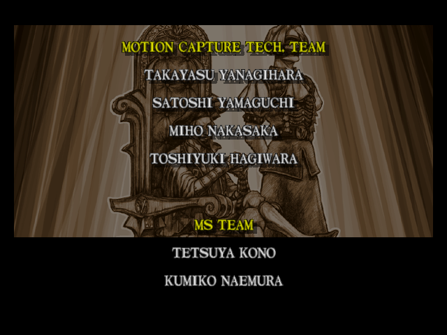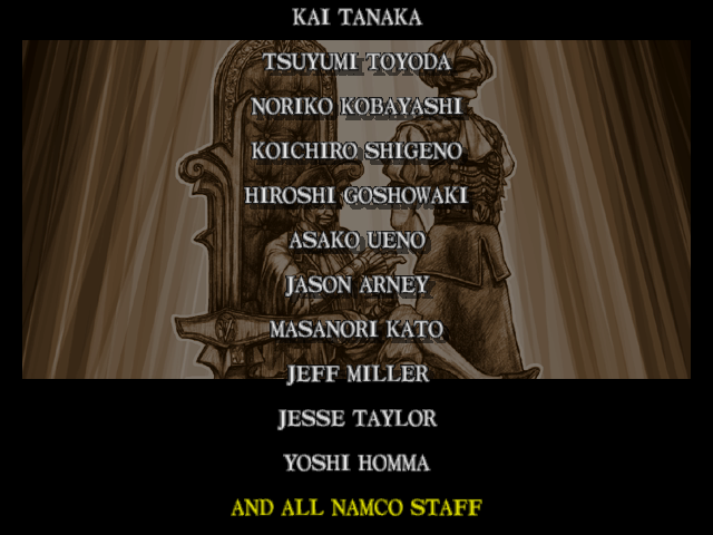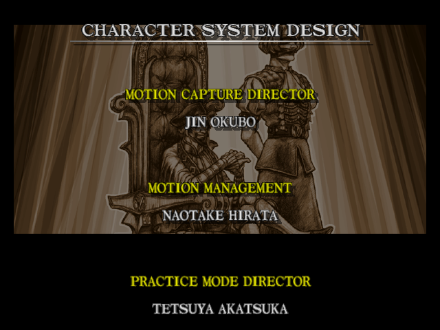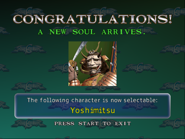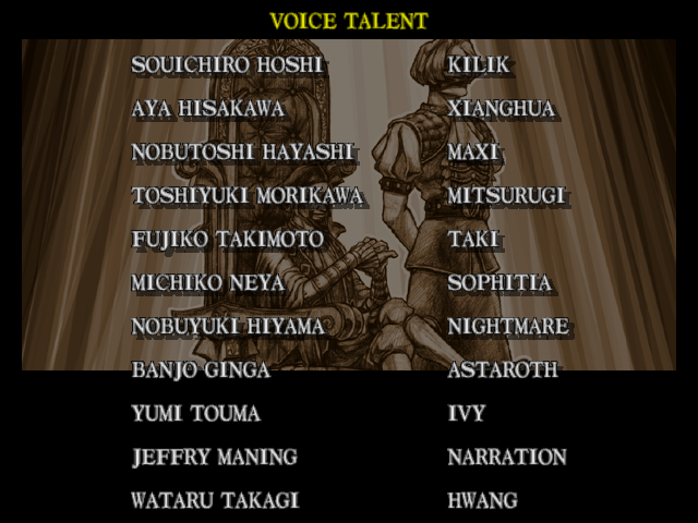 | Mitsurugi | - Voldo - | Ivy | Sophitia | Kilik | Xianghua | Maxi | Nightmare | Taki | Astaroth | Hwang | | Yoshimitsu | Lizardman | Siegfried | Rock | Seung Mina | Cervantes | Edge Master | Inferno | |