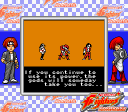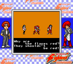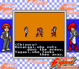 | - Iori, Chizuru, Kyo Team - | Mr. Big, Geese, Krauser Team | Leona, Iori, Mature Team | | Generic Team | - Special Teams - | | - Normal/Hard Mode - | Easy Mode | |
