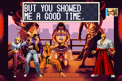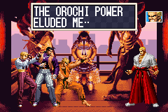 | Hero Team: Kyo, Moe, Benimaru | Ikari Team: Ralf, Clark, Leona | Fatal Fury Team: Terry, Andy, Mai | | - Art of Fighting Team: Ryo, Robert, King - | Psycho Soldier Team: Athena, Bao, Kensou | Taekwondo Team: Kim, Chang, Choi | | - Team Play - | Single Play | |