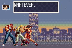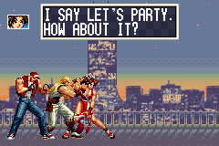 | Home | BackTweet | - Team Play - | Single Play | | Hero Team: Kyo, Moe, Benimaru | Ikari Team: Ralf, Clark, Leona | - Fatal Fury Team: Terry, Andy, Mai - | | Art of Fighting Team: Ryo, Robert, King | Psycho Soldier Team: Athena, Bao, Kensou | Taekwondo Team: Kim, Chang, Choi |