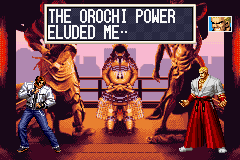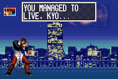 | - Kyo - | Moe | Benimaru | Terry | Andy | Mai | Ralf | Clark | Leona | | King | Robert | Ryo | Athena | Bao | Kensou | Kim | Chang | Choi | Iori | Geese | | Team Play | - Single Play - | |