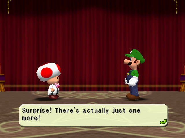 | Daisy | DK | - Luigi - | Mario | Peach | Waluigi | Wario | Yoshi | |