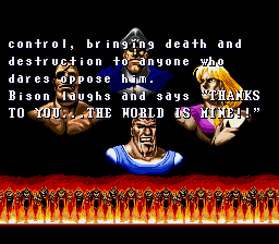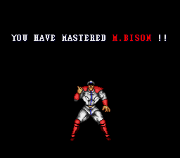 | Ryu | Ken | Chun-Li | Guile | E.Honda | Zangief | | Blanka | Dhalsim | Balrog | Vega | Sagat | - M.Bison - | | - Difficulty 4-8 - | Difficulty 1-3 | |