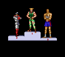 | Ryu | Ken | Chun-Li | - Guile - | E.Honda | Zangief | | Blanka | Dhalsim | Balrog | Vega | Sagat | M.Bison | | - Difficulty 4-8 - | Difficulty 1-3 | |