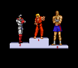 | Ryu | - Ken - | Chun-Li | Guile | E.Honda | Zangief | | Blanka | Dhalsim | Balrog | Vega | Sagat | M.Bison | | - Difficulty 4-8 - | Difficulty 1-3 | |