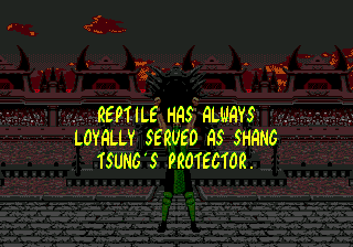 | Home | BackTweet | Sub-Zero | Scorpion | Rayden | - Reptile - | Mileena | Liu Kang | Kitana | | Johnny Cage | Kung Lao | Jax | Baraka | Shang Tsung |
