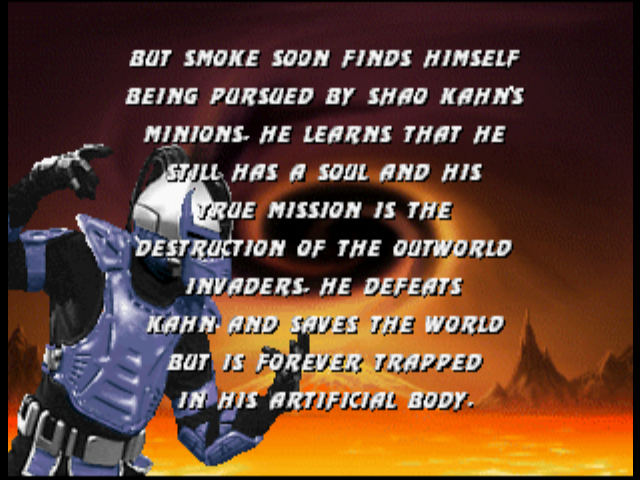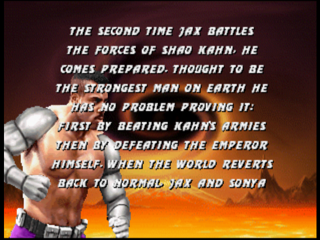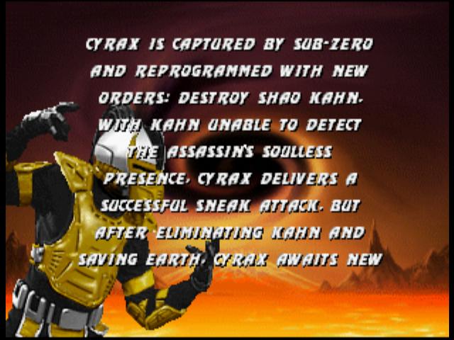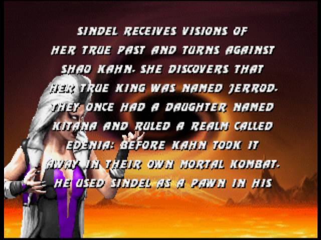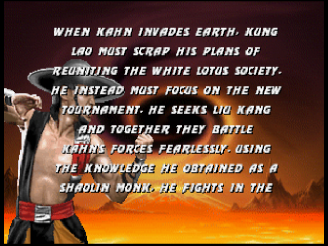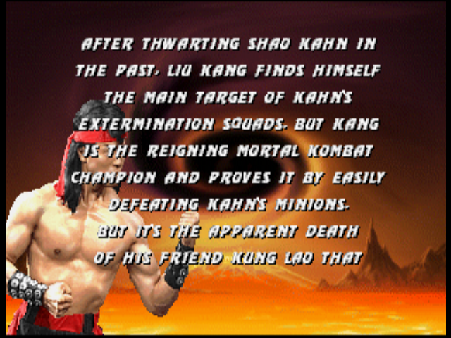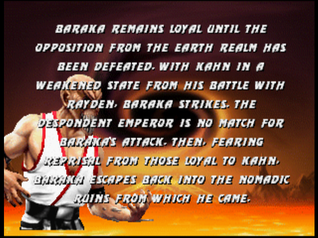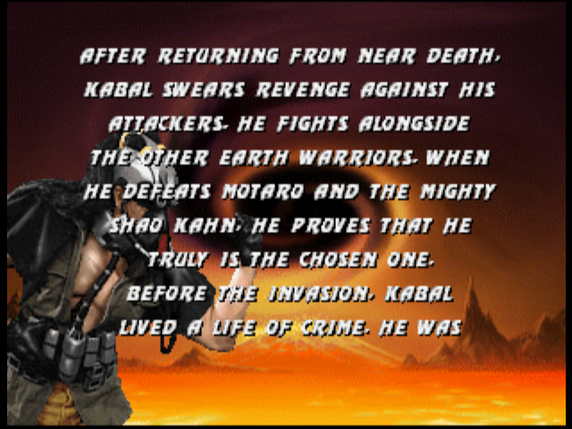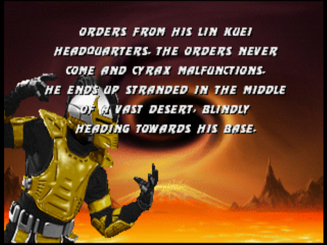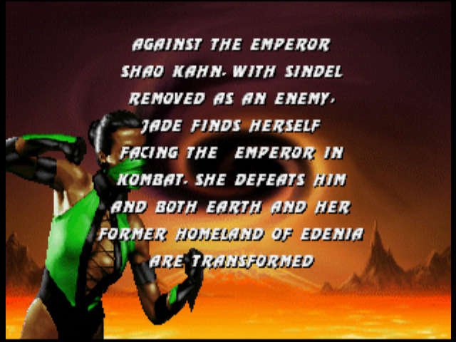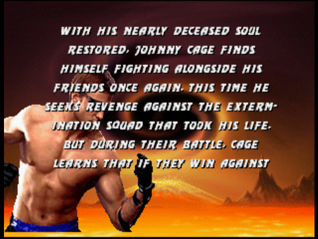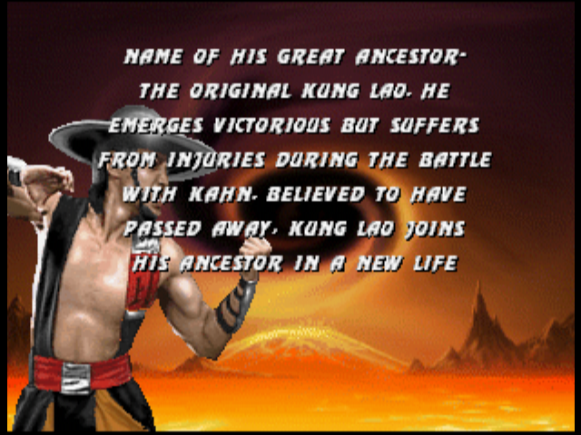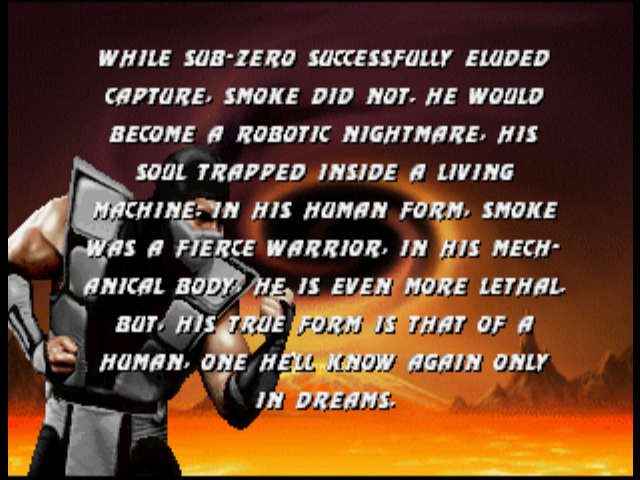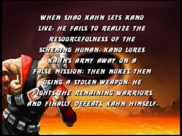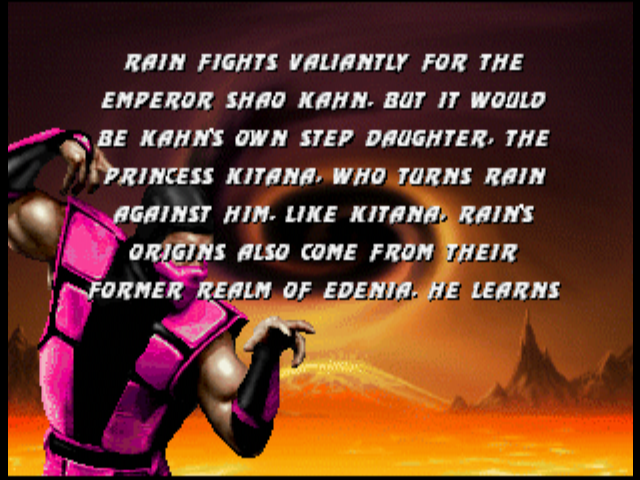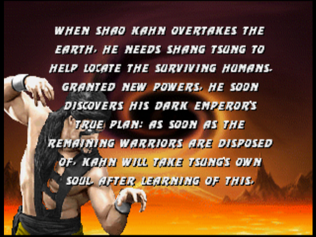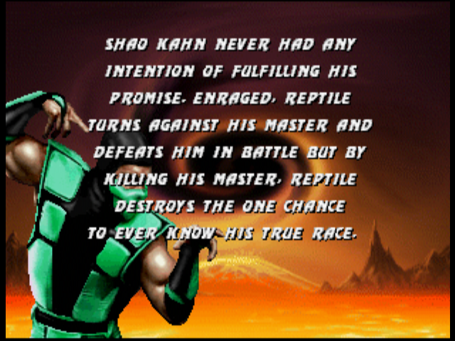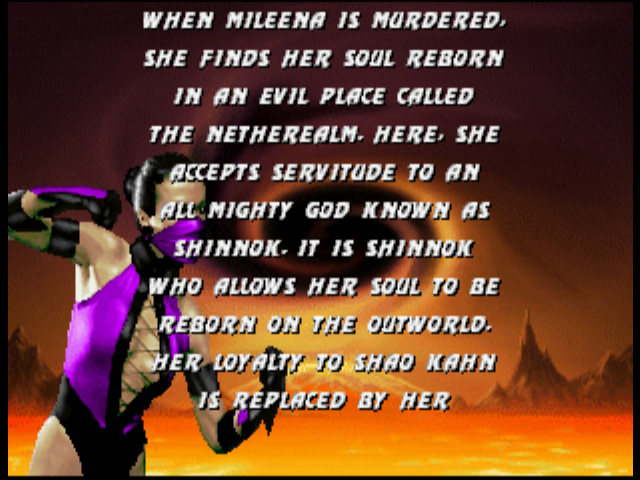 | - Scorpion - | Noob Saibot | Baraka | Johnny Cage | Sonya | Rayden | Rain | Cyrax | Smoke (Human) | Khameleon | Reptile | Jax | Sektor | | Liu Kang | Jade | Sheeva | Kung Lao | Smoke | Nightwolf | Sindel | Ermac | Sub-Zero | Stryker | Kabal | Kitana | Kano | Shang Tsung | Mileena | |