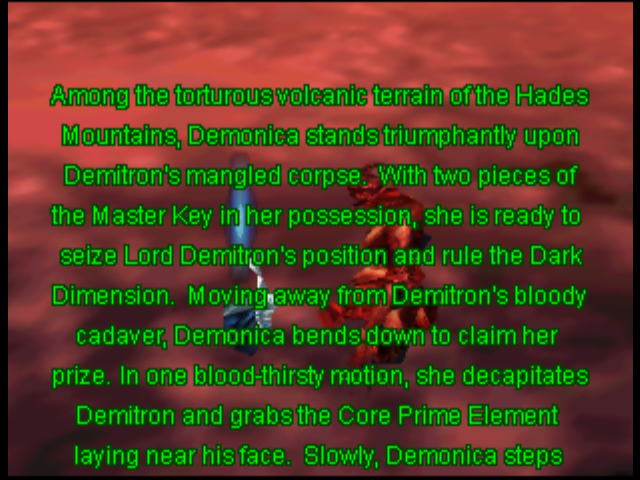 | Gore | Morphix | Niiki | Scarlet | Zenmuron | Aaron | - Demonica - | Eve | Sonork | Demitron | | Normal / Hard | Easy | |