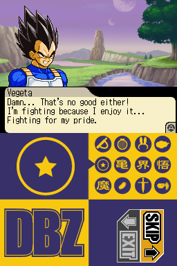 | - Vegeta Bets Everything - | Comeback, and Victory! | | Goku | Android #18 | Broly | Buu | Cell | Cooler | Dr. Gero | Frieza | Ginyu | Gohan | Gotenks | Krillin | Piccolo | Trunks | - Vegeta - | | - Story Mode - | Z-Battle | Maximum | |