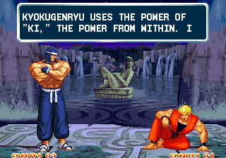 | Ryo-Sakazaki | - Jin-Fuha - | Karman-Cole | Kasumi-Todoh | Lenny-Creston | | Robert-Garcia | Rody-Birts | Wang-Koh-San | Sinclair | Wyler | |