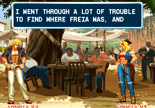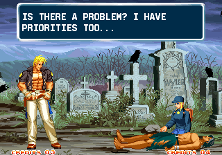 | Ryo-Sakazaki | Jin-Fuha | Karman-Cole | Kasumi-Todoh | Lenny-Creston | | Robert-Garcia | - Rody-Birts - | Wang-Koh-San | Sinclair | Wyler | |
