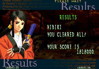 | - If You Don't Perform 6 Kills - | If You Perform 6 Kills (Japanese Version Only) | | Kaede | Akari | Amano | Juzoh | Moriya | Yuki | Okina | Lee | Washizuka | Zantetsu | | Shigen | Kagami | Mukuro | Setsuna | - Hibiki - | Kojiroh | Original Kaede | Hagure | Kouryu | |