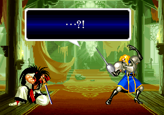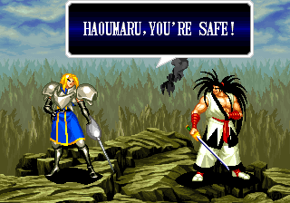 | Haohmaru | Kazuki Kazama | Sogetsu Kazama | Galford | Jubei Yagyu | Basara Kubikiri | Shizumaru Hisame | Rimururu | - Charlotte - | | Genjuro Kibagami | Ukyo Tachibana | Hanzo Hattori | Kyoshiro Senryo | Gaira Kafuin | Nakoruru | Tam Tam | Amakusa Shirou | | - Good Endings - | Bad Ending | |