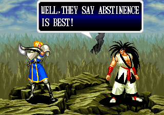 | Home | BackTweet | - Good Endings - | Bad Ending | | Haohmaru | Kazuki Kazama | Sogetsu Kazama | Galford | Jubei Yagyu | Basara Kubikiri | Shizumaru Hisame | Rimururu | - Charlotte - | | Genjuro Kibagami | Ukyo Tachibana | Hanzo Hattori | Kyoshiro Senryo | Gaira Kafuin | Nakoruru | Tam Tam | Amakusa Shirou |