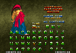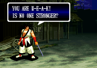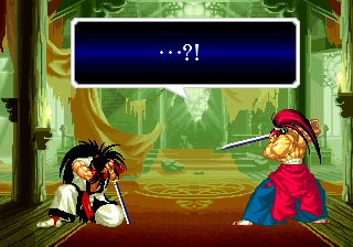 | Haohmaru | Kazuki Kazama | Sogetsu Kazama | Galford | Jubei Yagyu | Basara Kubikiri | Shizumaru Hisame | Rimururu | Charlotte | | - Genjuro Kibagami - | Ukyo Tachibana | Hanzo Hattori | Kyoshiro Senryo | Gaira Kafuin | Nakoruru | Tam Tam | Amakusa Shirou | | - Good Endings - | Bad Ending | |
