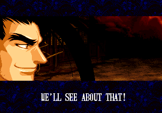 | Home | BackTweet | - Good Endings - | Bad Ending | | Haohmaru | Kazuki Kazama | Sogetsu Kazama | Galford | Jubei Yagyu | Basara Kubikiri | Shizumaru Hisame | Rimururu | Charlotte | | - Genjuro Kibagami - | Ukyo Tachibana | Hanzo Hattori | Kyoshiro Senryo | Gaira Kafuin | Nakoruru | Tam Tam | Amakusa Shirou |