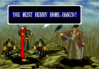 | Home | BackTweet | - Good Endings - | Bad Ending | | Haohmaru | Kazuki Kazama | Sogetsu Kazama | Galford | Jubei Yagyu | Basara Kubikiri | Shizumaru Hisame | Rimururu | Charlotte | | Genjuro Kibagami | Ukyo Tachibana | - Hanzo Hattori - | Kyoshiro Senryo | Gaira Kafuin | Nakoruru | Tam Tam | Amakusa Shirou |