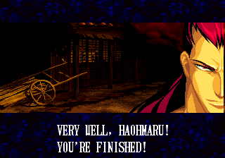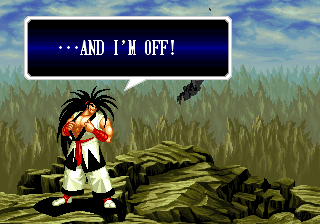 | Home | BackTweet | - Good Endings - | Bad Ending | | - Haohmaru - | Kazuki Kazama | Sogetsu Kazama | Galford | Jubei Yagyu | Basara Kubikiri | Shizumaru Hisame | Rimururu | Charlotte | | Genjuro Kibagami | Ukyo Tachibana | Hanzo Hattori | Kyoshiro Senryo | Gaira Kafuin | Nakoruru | Tam Tam | Amakusa Shirou |
