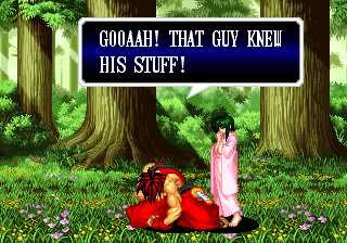 | Home | BackTweet | - Good Endings - | Bad Ending | | Haohmaru | - Kazuki Kazama - | Sogetsu Kazama | Galford | Jubei Yagyu | Basara Kubikiri | Shizumaru Hisame | Rimururu | Charlotte | | Genjuro Kibagami | Ukyo Tachibana | Hanzo Hattori | Kyoshiro Senryo | Gaira Kafuin | Nakoruru | Tam Tam | Amakusa Shirou |