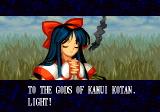 | Home | BackTweet | - Good Endings - | Bad Ending | | Haohmaru | Kazuki Kazama | Sogetsu Kazama | Galford | Jubei Yagyu | Basara Kubikiri | Shizumaru Hisame | Rimururu | Charlotte | | Genjuro Kibagami | Ukyo Tachibana | Hanzo Hattori | Kyoshiro Senryo | Gaira Kafuin | - Nakoruru - | Tam Tam | Amakusa Shirou |