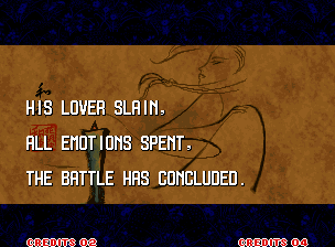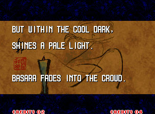 | Haohmaru | - Basara - | Genjuro Kibagami | Shizumaru Hisame | Galford | Gaira Kafuin | | Kyoshiro Senryo | Ukyo Tachibana | Rimururu | Nakoruru | Hanzo Hattori | Amakusa Shiro | |