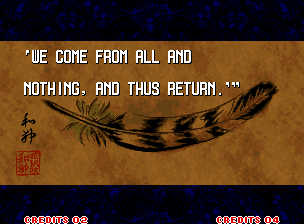 | Home | BackTweet | Haohmaru | Basara | Genjuro Kibagami | Shizumaru Hisame | Galford | Gaira Kafuin | | Kyoshiro Senryo | Ukyo Tachibana | Rimururu | - Nakoruru - | Hanzo Hattori | Amakusa Shiro |