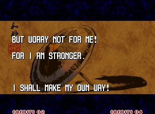 | Haohmaru | Basara | Genjuro Kibagami | - Shizumaru Hisame - | Galford | Gaira Kafuin | | Kyoshiro Senryo | Ukyo Tachibana | Rimururu | Nakoruru | Hanzo Hattori | Amakusa Shiro | |