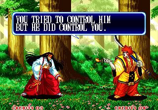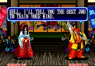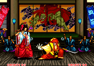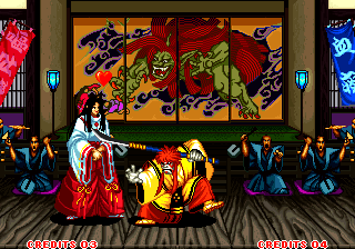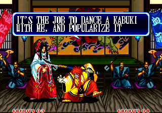 | Home | BackTweet | Haohmaru | Charlotte | Hanzo Hattori | Genjuro Kibagami | - Kyoshiro Senryo - | Sieger Neinhalt | Galford | | Earthquake | Cham Cham | Ukyo Tachibana | Jubei Yagyu | Nakoruru | Gen-An Shiranui | Wan-Fu | Nicotine Caffeine |