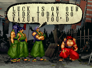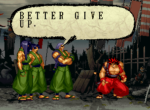 | Home | BackTweet | Haohmaru | Rasetsumaru | Jubei | Mina | Rera | Tam Tam | Suija | Nakoruru | Rimururu | Galford | Poppy | Hanzo | Basara | | Ukyo | Gaira | Kazuki | Kyoshiro | Sogetsu | Charlotte | Genjuro | Yoshitora | Shizumaru | Kusaregedo | Yunfei | - Enja - |