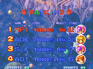 | Load Ran | Kim | Nanja Monja | Tinker & Linker | Realy Till | Griffon | Yan Yanyung | | Arthur Schmitt | - Macky & Pentell - | Dark Ran | Sprites | Mevious | Memory | | - Character Mode - | Story Mode | |