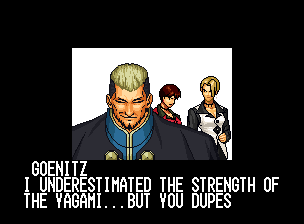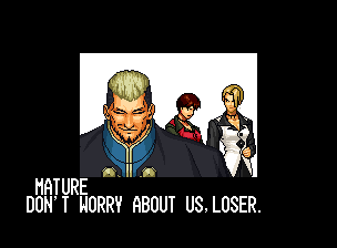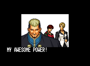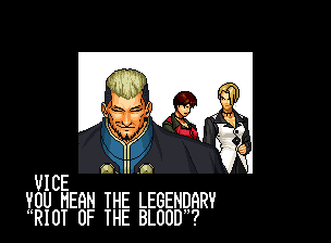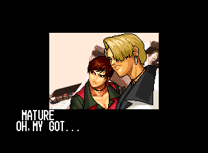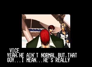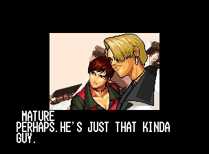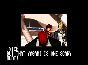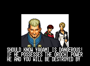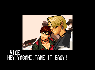 | Hero Team: Kyo, Benimaru, Daimon | Fatal Fury Team: Terry, Andy, Joe | Art of Fighting Team: Ryo, Yuri, Robert | Psycho Soldier Team: Athena, Kensou, Chin | | Korea Team: Kim, Chang, Choi | New Ikari Team: Leona, Clark, Ralf | New Women Fighters Team: Kasumi, Mai, King | - Yagami Team: Iori, Mature, Vice - | | Boss Team: Gesse, W.Krauser, Mr.Big | | - Standard Teams - | Special Teams | Team Edit | |