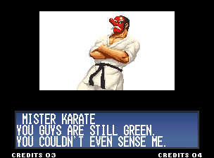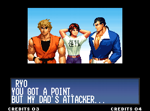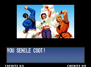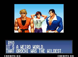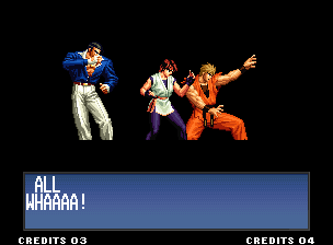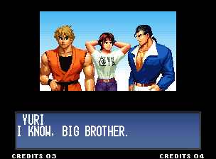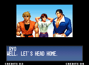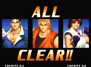 | Home | BackTweet | - Standard Teams - | Special Teams | Team Edit | | Hero Team: Kyo, Benimaru, Daimon | Fatal Fury Team: Terry, Andy, Joe | - Art of Fighting Team: Ryo, Robert, Yuri - | Ikari Team: Ralf, Clark, Leona | | Psycho Soldier Team: Athena, Kensou, Chin | Women Fighters Team: Mai, Chizuru, King | Korea Team: Kim, Chang, Choi | | New Face Team: Yashiro, Shermie, Chris | '97 Special Team: Blue Mary, Ryuji, Billy Kane |