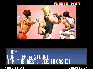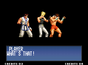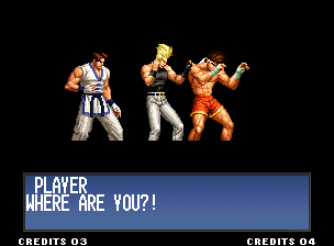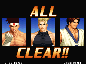 | Sacred Force Team: Kyo, Iori, Chizuru | '94 Females Team: Mai, King, Yuri | Old SNK Team: Athena, Ralf, Clark | | - Sidekick Team: Benimaru, Joe, Kim - | Superstar Team: Kyo, Terry, Ryo | Kyo & Shingo Team | | Distant Desire Team: Terry, Mary, Joe (Japanese Version) | Bad Boys Team: Yamazaki, Chang, Choi (Japanese Version) | Fiery Vigor Team: Billy, Kyo, Mai (Japanese Version) | | Standard Teams | - Special Teams - | Team Edit | |