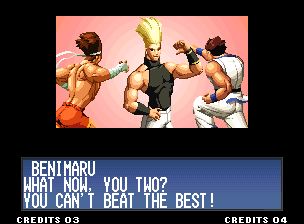 | Home | BackTweet | Standard Teams | - Special Teams - | Team Edit | | Sacred Force Team: Kyo, Iori, Chizuru | '94 Females Team: Mai, King, Yuri | Old SNK Team: Athena, Ralf, Clark | | - Sidekick Team: Benimaru, Joe, Kim - | Superstar Team: Kyo, Terry, Ryo | Kyo & Shingo Team | | Distant Desire Team: Terry, Mary, Joe (Japanese Version) | Bad Boys Team: Yamazaki, Chang, Choi (Japanese Version) | Fiery Vigor Team: Billy, Kyo, Mai (Japanese Version) |
