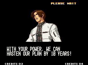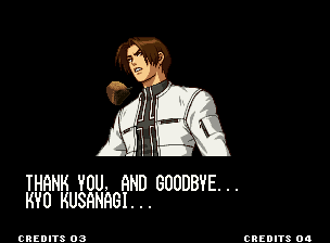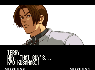 [ If Terry, Andy or Joe Won ] [ If Mai Shiranui Won ] | Hero Team: K', Maxima, Benimaru, Shingo | - Fatal Fury Team: Terry, Andy, Joe, Mai - | Art of Fighting Team: Ryo, Robert, Takuma, Yuri | | Women Fighters Team: Blue Mary, King, Xiangfei, Kasumi | Ikari Team: Ralph, Clark, Leona, Whip | Psycho Soldier Team: Athena, Kensou, Bao, Chin | Korea Team: Kim, Chang, Choi, Jhun | | - Standard Teams - | Special Teams | Team Edit | |