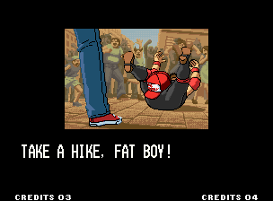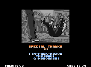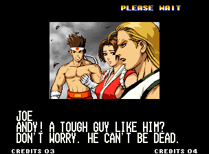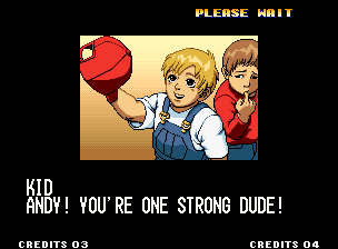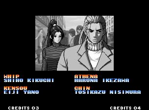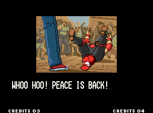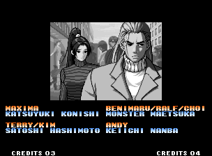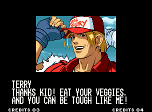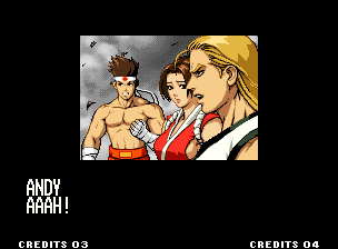 | Home | BackTweet | - Standard Teams - | Special Teams | Team Edit | | Hero Team: K', Maxima, Benimaru, Shingo | - Fatal Fury Team: Terry, Andy, Joe, Mai - | Art of Fighting Team: Ryo, Robert, Takuma, Yuri | | Women Fighters Team: Blue Mary, King, Xiangfei, Kasumi | Ikari Team: Ralph, Clark, Leona, Whip | Psycho Soldier Team: Athena, Kensou, Bao, Chin | Korea Team: Kim, Chang, Choi, Jhun | [ If Terry, Andy or Joe Won ]