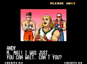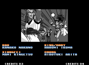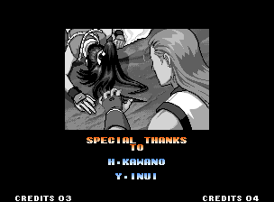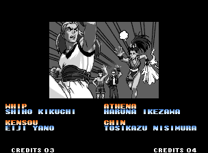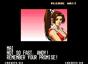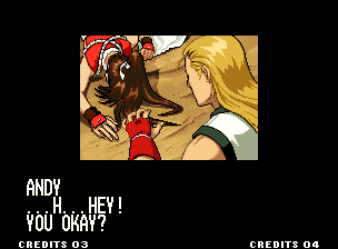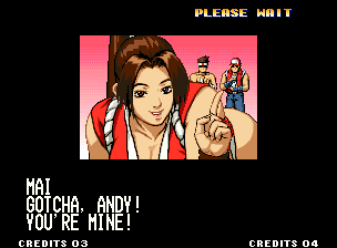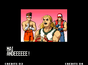 | Home | BackTweet | - Standard Teams - | Special Teams | Team Edit | | Hero Team: K', Maxima, Benimaru, Shingo | - Fatal Fury Team: Terry, Andy, Joe, Mai - | Art of Fighting Team: Ryo, Robert, Takuma, Yuri | | Women Fighters Team: Blue Mary, King, Xiangfei, Kasumi | Ikari Team: Ralph, Clark, Leona, Whip | Psycho Soldier Team: Athena, Kensou, Bao, Chin | Korea Team: Kim, Chang, Choi, Jhun | [ If Mai Shiranui Won ]