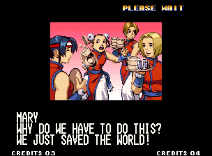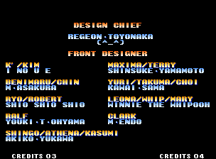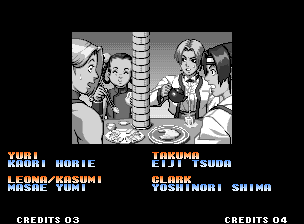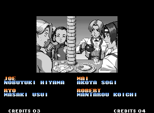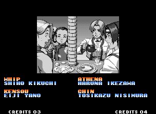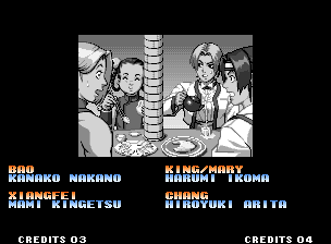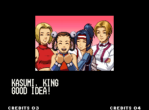 | Hero Team: K', Maxima, Benimaru, Shingo | Fatal Fury Team: Terry, Andy, Joe, Mai | Art of Fighting Team: Ryo, Robert, Takuma, Yuri | | - Women Fighters Team: Blue Mary, King, Xiangfei, Kasumi - | Ikari Team: Ralph, Clark, Leona, Whip | Psycho Soldier Team: Athena, Kensou, Bao, Chin | Korea Team: Kim, Chang, Choi, Jhun | | - Standard Teams - | Special Teams | Team Edit | |