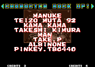 | Home | BackTweet | Terry Bogard | Andy Bogard | Joe Higashi | Mai Shiranui | | Kim Kaphwan | Jubei Yamada | - Cheng Sinzan - | Big Bear |
