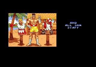 | Terry Bogard | Andy Bogard | - Joe Higashi - | Mai Shiranui | Kim Kaphwan | Blue Mary | Hon Fu | Bob Wilson | | Franco Bash | Ryuji Yamazaki | Duck King | Sokaku Mochizuki | Billy Kane | Jin Chonrei | Jin Chonshu | Geese Howard | |