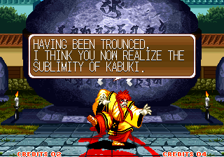 | Home | BackTweet | Haohmaru | Hanzo Hattori | Charlotte | Galford | Nakoruru | Jubei Yagyu | Earthquake | | Gen-An Shiranui | - Kyoshiro Senryo - | Tam Tam | Ukyo Tachibana | Wan-Fu |