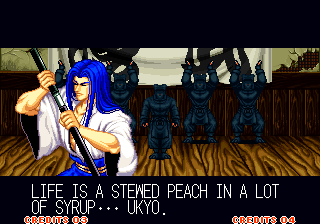 | Home | BackTweet | Haohmaru | Hanzo Hattori | Charlotte | Galford | Nakoruru | Jubei Yagyu | Earthquake | | Gen-An Shiranui | Kyoshiro Senryo | Tam Tam | - Ukyo Tachibana - | Wan-Fu |